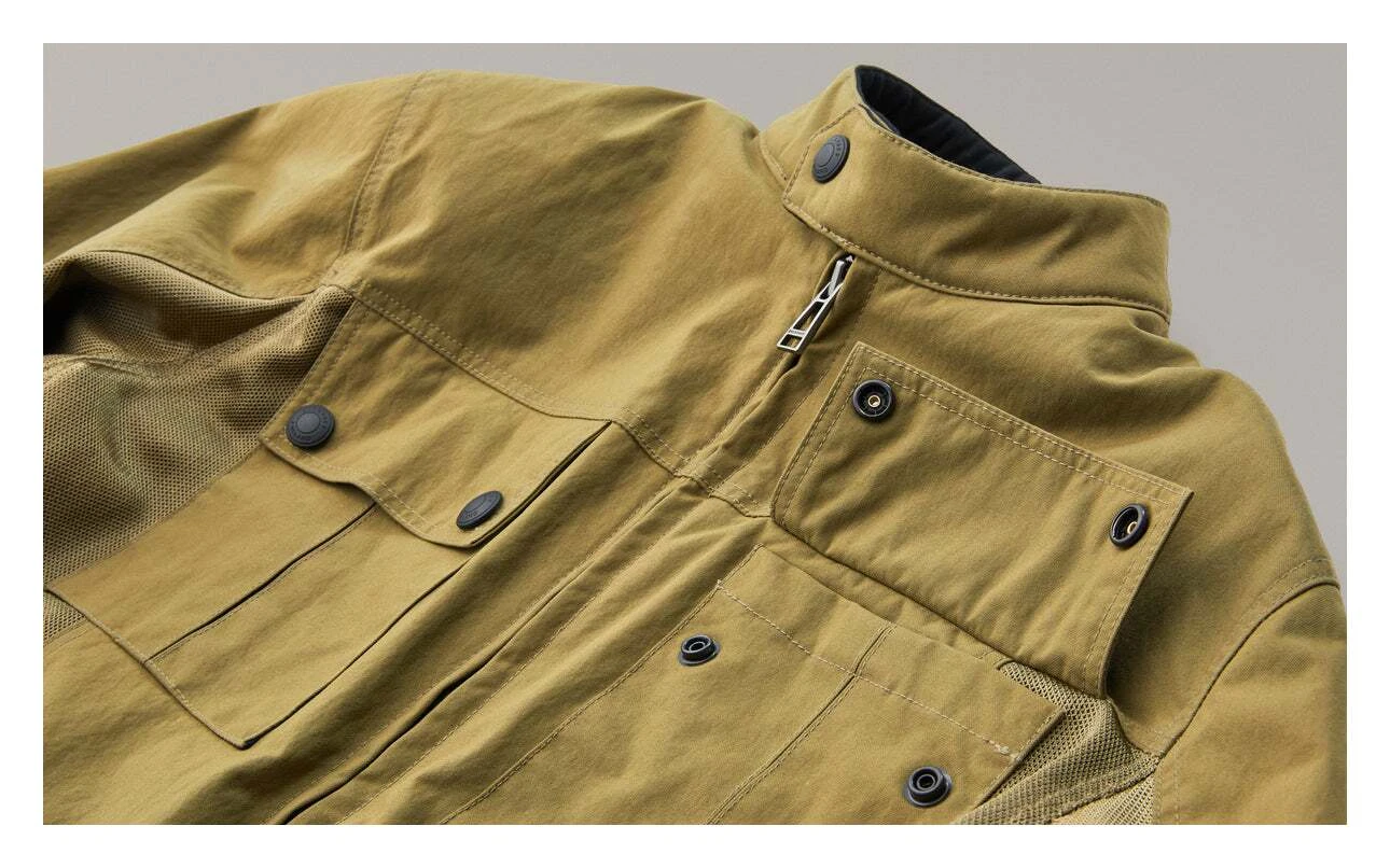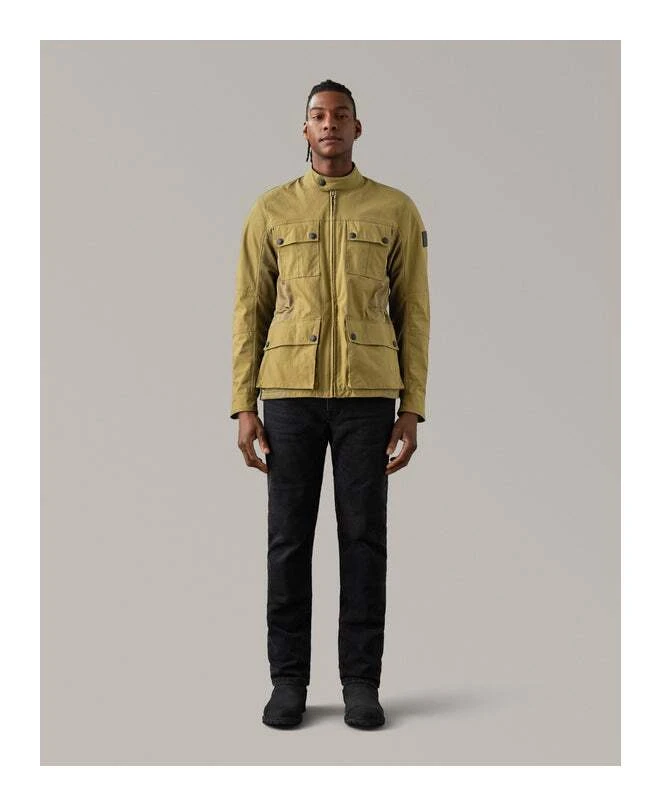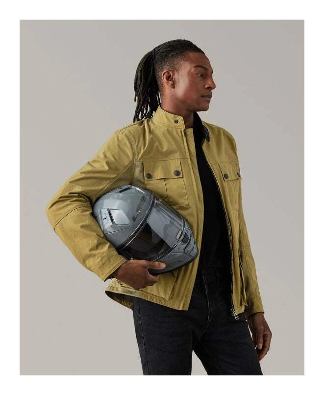 The Airflow jacket in Black blends modern technology with Belstaff’s heritage. Constructed from durable Belstaff Technical Nylon, it boasts a timeless four-pocket design. Lightweight and equipped with D3O shoulder and elbow armor, it also offers an internal zipped pocket for an optional back protector. Additional features include stud fastening internal trouser loops, Belstaff antimicrobial mesh lining, adjustable waist drawstring, reflective logos and hem piping and silicone-coated snaps to protect the paintwork.
