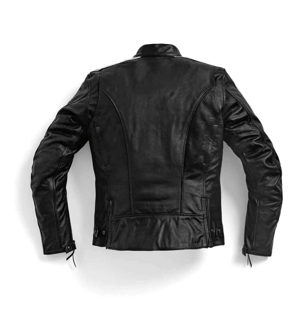 The TwinStripes Jacket fits in among the airhead, oilhead and the water-cooled crowds all with equal aplomb. The simple exterior is fortified with modern NP-Flex impact protectors on the shoulders and elbows. An efficient vent scheme with intakes at the chest and exhaust ports at the back help you regulate temperatures. Leather racing stripes that run the length of the arms add some ferocity to the cool, blacked out demeanor. A tapered waist and zippered gussets at the hem let you fine-tune the perfect fit. Â
