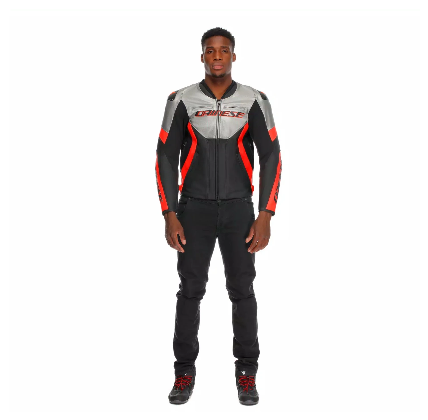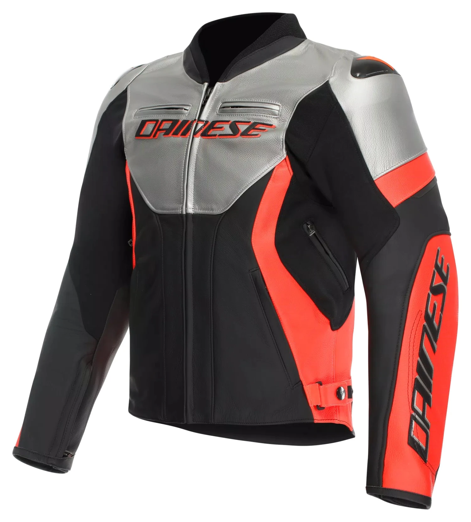 The Racing 5 Leather Jacket by Dainese is an evolution of the popular design, tailored for riders in warm weather and summer conditions. Crafted from premium 1.2 mm Tutu cowhide, it offers a sporty yet comfortable fit with features like the Veloce Racing Neck collar, S1 bi-elastic fabric and adjustable hips for enhanced mobility. Certified to EN 17092 class AA standards, it includes CE Level 2 protectors for elbows and shoulders, replaceable aluminum shoulder inserts and compatibility with the Dainese Smart Air airbag for optimal safety and convenience.