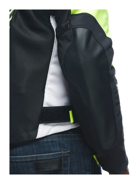 The Super Rider 2 Absoluteshell Jacket from Dainese is a pack leader in the realm of waterproof summer weather jackets. The EN 17092 Class A certified jacket uses a rugged Mugello fabric chassis that is overlaid with leather at the shoulders, upper arm and elbows. Shoulders also receive external aluminum hard sliders. Strategic use of highly breathable mesh is applied to secondary areas. A waterproof liner using Dainese’s proprietary Absoluteshell material is easy to remove or can be worn as a standalone rain jacket.Â