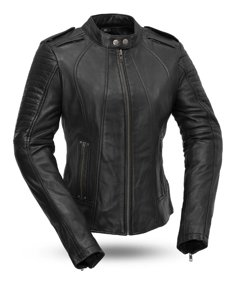 The Biker Leather Jacket is constructed from sheep diamond leather with perforations on the back. With the removable thermal liner, this jacket can be worn comfortable on cold or warmer days.