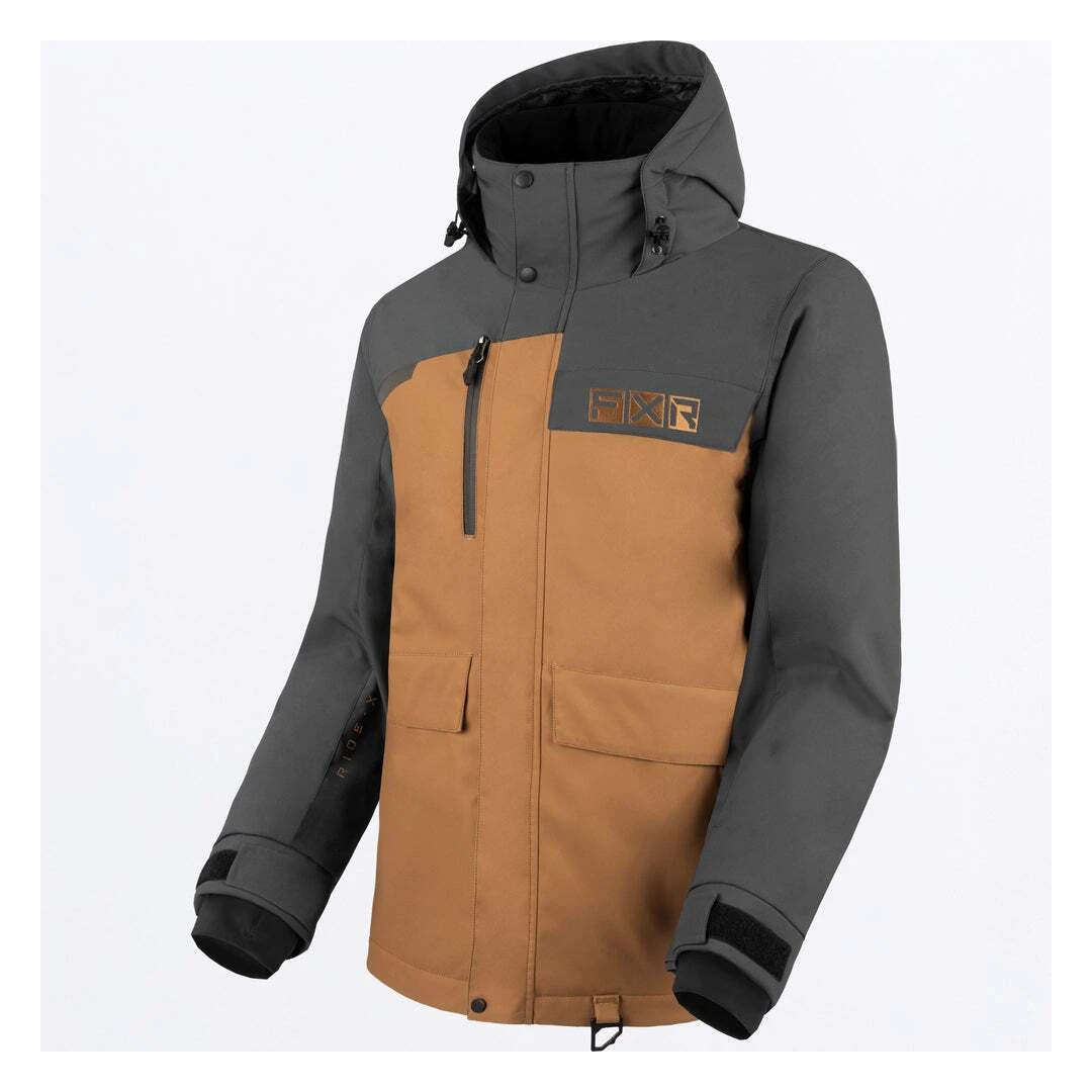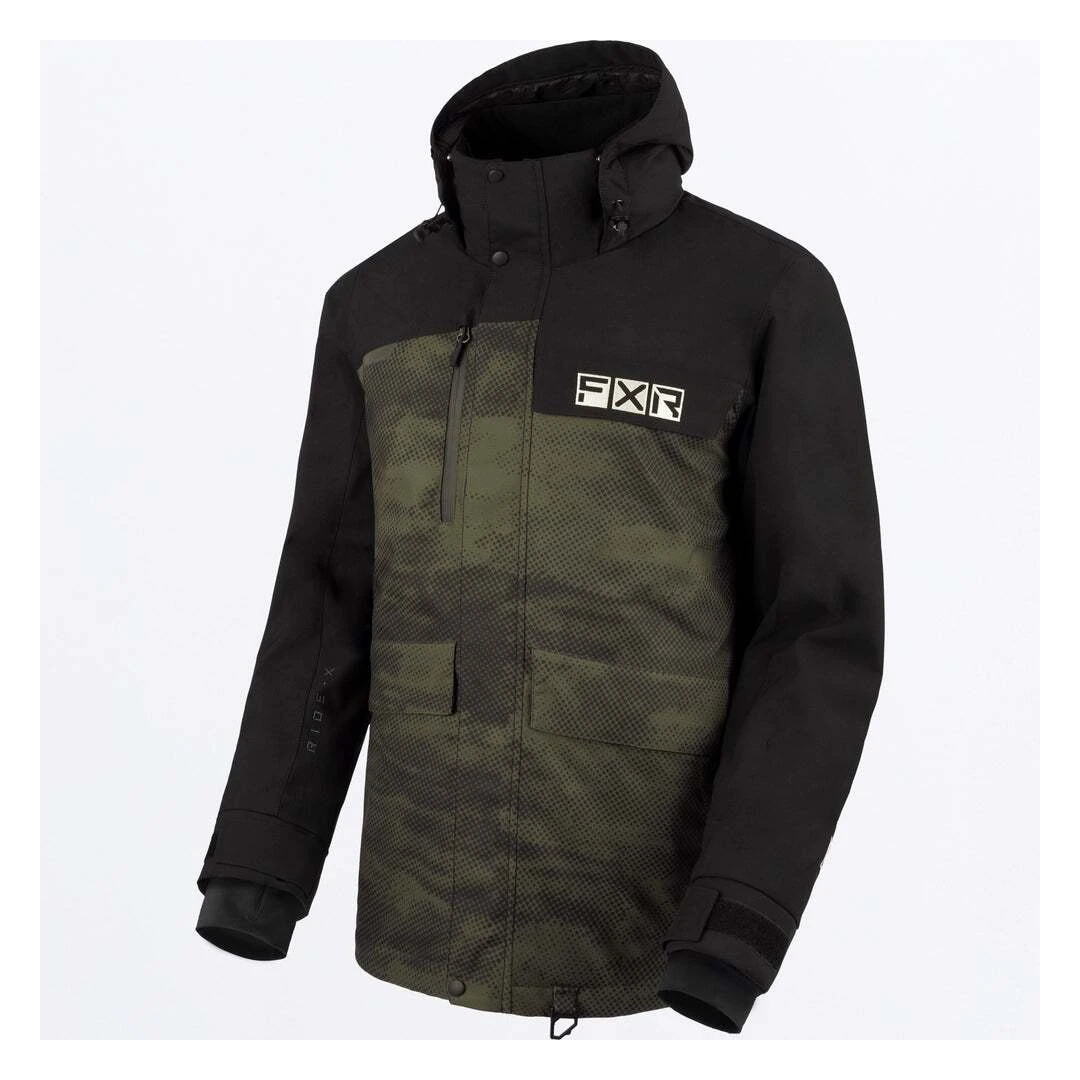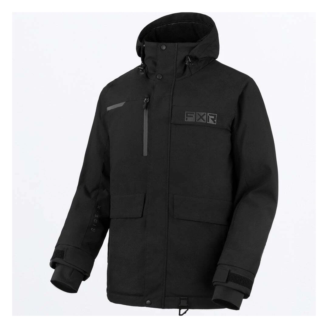 Gear up for winter in style and comfort with the FXR Chute Jacket. This winter essential combines a M-Series Omni-Stretch 300D polyester shell with a HydrX Pro laminate, ensuring an impressive 10,000mm waterproof rating and 8,000g/m² breathability for a warm and dry experience. Seam-sealed in critical areas, it offers maximum protection against the elements. The Chute jacket boasts a nylon taffeta lining with a sherpa fleece back panel for extra coziness. Equipped with the FXR Dry Vent system, featuring moisture-resistant chest and side body vents, riders have excellent climate control. The 60g FXR Thermal Flex fill provides just the right amount of insulation. Additional highlights include a heavy-duty YKK #8 Vislon 2-way front zipper, YKK zippers at side vents and hand pockets and a heavy-duty #8 waterproof zipper at the chest pocket. A cold stop front placket with a hook and loop and snap closure system, an adjustable wind skirt with a pant attachment system and a high collar with a fixed adjustable hood keep riders snug.