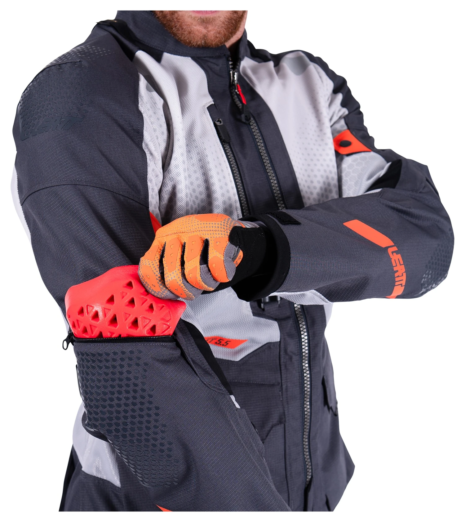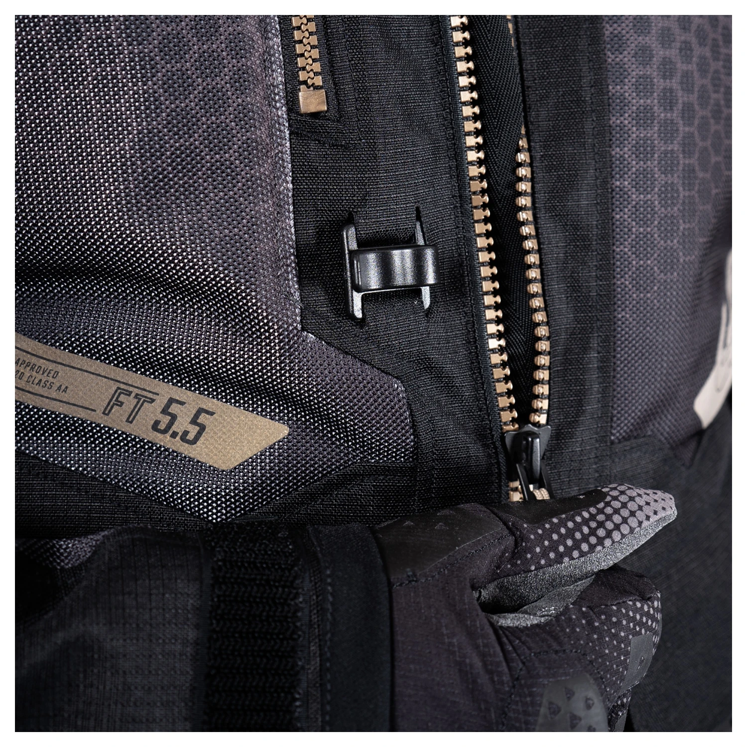 The ADV FlowTour 5.5 is a ventilated jacket designed for comfort and protection. With the added versatility of a waterproof outer layer, it is ideal for riders who require adaptability and protection in varying weather conditions. The jacket is constructed from rip-stop material, ensuring durability and resistance to wear and tear. Large X-Flow mesh panels provide exceptional ventilation, keeping you cool during even the most intense rides. Perfect for wet conditions, the jacket includes a HydraDri® waterproof over-jacket that can be worn over the main shell or as a separate waterproof jacket, offering excellent versatility. The jacket features 3DF Level 2 protectors for the back, elbows, and shoulders, with the option for an additional chest protector for proper impact protection.