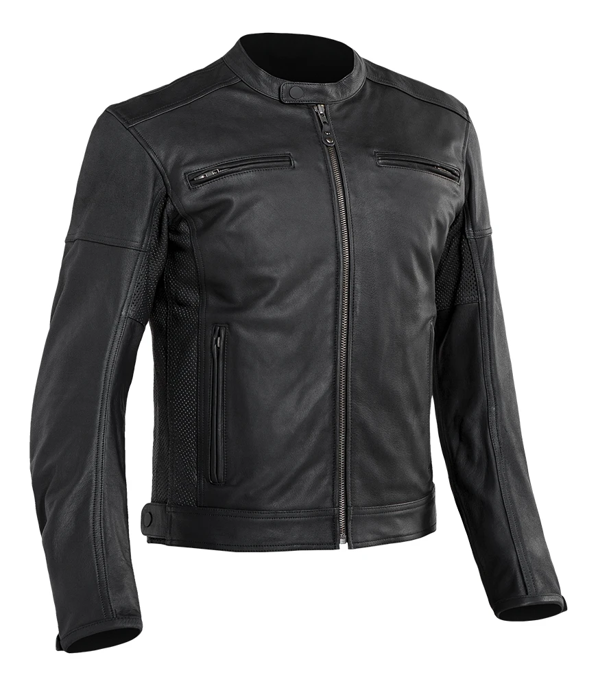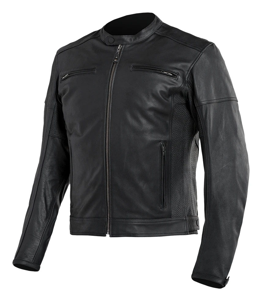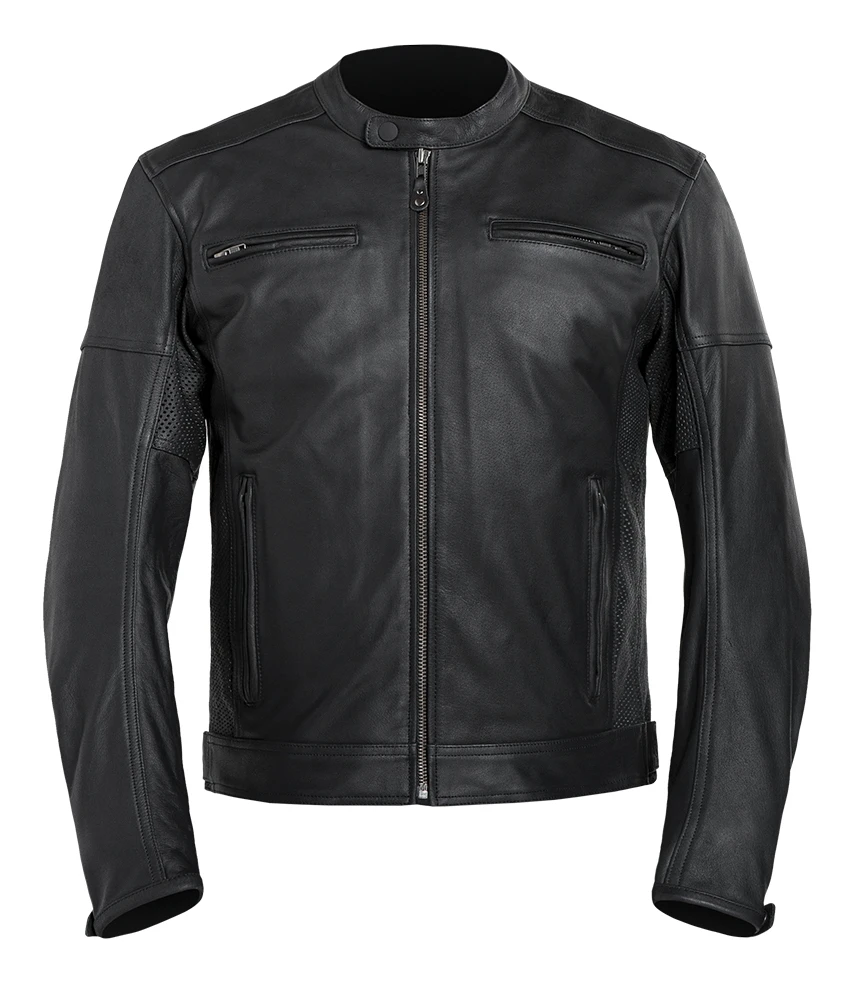 With the contours of a classic mandarin collar motorcycle jacket, the Street & Steel Blade Leather Jacket is made out of natural drum dyed leather with extra perforation at the sides of the torso for extra breathability. CE rated protectors at the shoulders and elbows come stock from the factory with the option to add in a back protector (sold separately) into the rear pocket. Adjustments at the waist help with fit, while internal pockets let you pack your CCW and extra ammo.Â