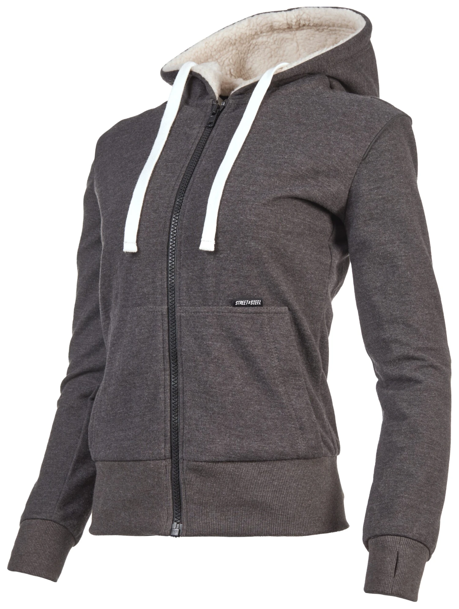 The Street & Steel Full Tilt Moto Hoody was purpose built to look casual, keep you comfortable and protect you should the worst occur. Street & Steel forgoes the standard cotton blend material and uses more robust cotton/aramid knit to boost abrasion resistance. AXIAL AX2 CE Level 2 rated elbow and shoulder armor provides impact protection without adding excess bulk and back pocket allows you to add an optional back protector. A fleece lined hood provides extra warmth and comfort off the bike and its drawstrings are cleverly positioned inside the hood to keep them from flapping in the wind. Blacked out reflective material on the shoulders is incognito right up until it is hit by headlights.